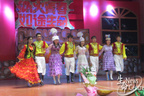 亲如一家的感情。同学们的表演也精彩非凡,由生信一、二班和中药二班共同献上的民族舞展现了藏族、维吾尔族、哈萨克族的民俗风情,让同学们真正体会到了这阵《最炫民族风》,也体现了我院各民族同学团结向上的精神风貌;生信1班带来具有新意的节目人影戏《弄影》,在短短几分钟内,同学们就将狄仁杰、李元芳、许仙、孙悟空等荧屏角色呈现在舞台上,展现了“那些年我们一起追过的经典”,唤起了同学们儿时的回忆;生工二班的小品《甄嬛新传》笑料百出;制药二班为大家带来的集体舞《青春逆袭》让人目不暇接;更有研究生独唱《红玫瑰》,让观众感受到生命学子的别样温情。