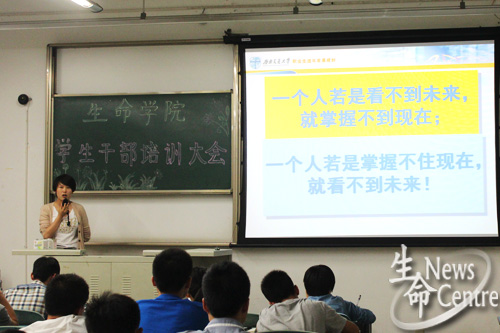 在大会中,崔健老师对各位学生干部平时做出的努力给予了肯定,希望各干部继续努力,但也要搞好学生的本职—学习。他从“慧思”和“慧行”讲解人生,无论做人做事,都应有乐观积极的心态。他指出每个人都应该有自己的规划:“我往何方走?我与谁为伍?我将成为什么?”,同时也对人际交往基础技能进行了详细的要求及指导。从平时学校社团协会活动,到待人的基本礼仪,再到办公室礼仪、社交礼仪、人际交往与口才一一进行了详细独到的讲解。
