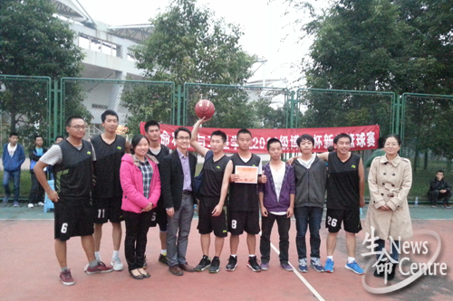 通过总决赛,前三名产生,分别为生工四班、一班和五班,学生会主席夏林主持了颁奖仪式。首先,由三位嘉宾老师为前三名颁发荣誉证书及奖品。接着,高鹏老师为本次大赛MVP莫春笙颁发奖杯。最后,为生工二班颁发道德风尚奖,三位嘉宾分别与球员拍照留念。