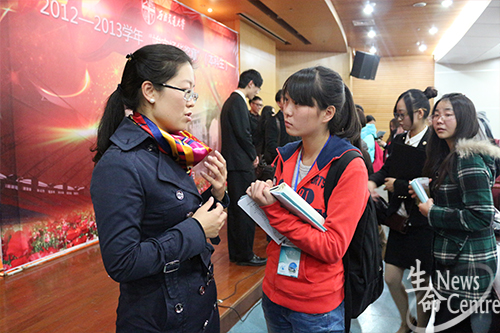 11月14日,2012--2013学年“竢实扬华奖章”(本科生)评选答辩会于图书馆一号报告厅顺利举行。校党委副书记朱健梅、副校长冯晓云、教务处、招生就业处、实验室及设备管理处、学生工作处、国际合作与交流处、校团委等部门的领导,以及各学院(中心)学生工作负责人、教师代表和本科生代表参加评选答辩会并担任评委。我院党委副书记罗妍妍、院长助理李遂焰作为学院学生工作负责人和教师代表参加了此次答辩会。另外,来自各学院(中心、所)低年级同学到场观摩。