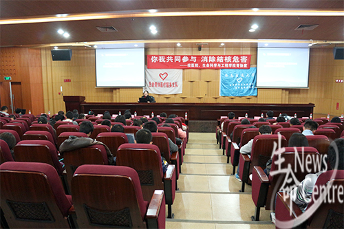 19:50,讲座正式开始。糜瑛主任由结核病的全球疫情状况入手分别就结核病的特点、诊断方法、预防措施、常用药物治疗疗程等相关知识作了详细讲解。她强调预防肺结核,要把个人卫生放在首位,经常对寝室进行消毒、开窗通风,一旦感染结核病,一定要及时就医并定期复查。
