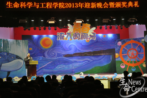 晚7时整,晚会如期开始,颁奖典礼部分由院党委副书记罗妍妍老师主持,学院到场领导作为颁奖嘉宾分别为获奖同学代表一次颁奖。颁奖典礼的最后,学院周先礼院长致辞,他首先向现场所有人员致以新年的问候,并表达对生命学子的殷切期望,希望大家今后认真努力,向各位获奖同学学习。
