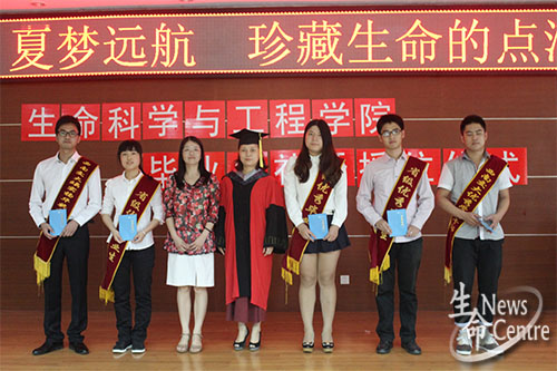 ,感恩交大母校。作为教师代表,2010级生物信息学2班班导师李琳副教授送上对毕业生们的祝福,希望大家毕业后能够成为各行各业的千里马,驰骋在祖国的大江南北,为学院、学校争光。现任辉瑞制药有公司零售西南大区成都地区经理、优秀校友代表06级制药工程汤惠上台发言,鼓励大家在以后的生活中更要坚持自己的梦想,让自己变得更加优秀。
