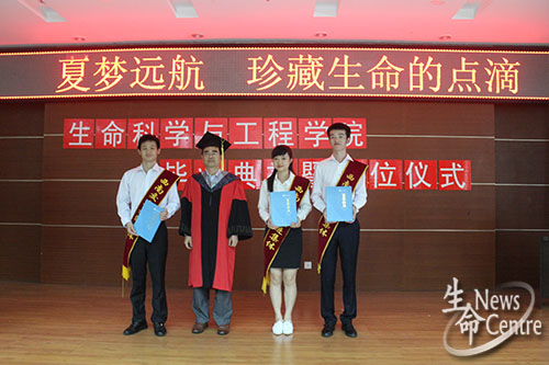 随后,本科毕业生代表生物信息学2010级2班、即将前往香港中文大学深造的胡捷同学上台发言,对四年来陪伴自己成长的师长们表示感激,感谢成人直播