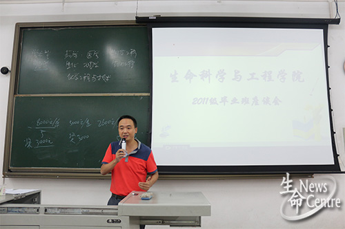 院长周先礼、党委副书记罗妍妍、工会主席胡久梅及生物系主任喻凯、化学化工系主任陆群、研究生导师孟涛出席了本次大会,大会由11级辅导员张敬文主持。