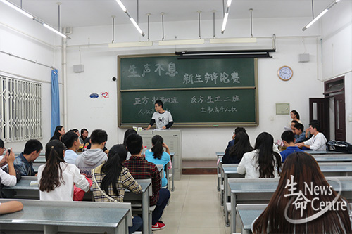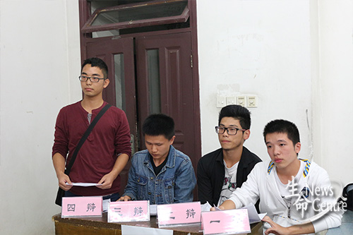 “生声不息”新生辩论赛初赛在X7102如期开赛。参与本场比赛的正反双方分别为制药四班与生工二班,他们的辩题围绕“主权是否高于人权”展开,评委由任澜、权圣威、管伊琳、赵昶淞和靳学担任,主持人为生工中美班的熊兰乔同学。