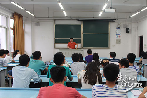 首先,魏源成老师向即将升入大四的2012级同学强调有关毕业的准备事宜;然后,介绍了“三下乡”的相关内容,他先讲解了明年关于“第二课堂”的改革,随后,又介绍了“第三课堂”,即社会实践活动,而 “三下乡”便是其中的主要形式。他提到,今年的“三下乡”活动有五大主题,分别是“120周年校庆”、“‘一带一路’专题”、“纪念中国人民抗日战争70周年”、“专业特色社会实践”以及“学习雷锋志愿活动”,有意愿的同学可以前往相关企业调研参观或者进行返乡社会实践。社会实践的形式分为校级以及院级,相关的报名方式与报名时间可参见扬华素质网成人直播