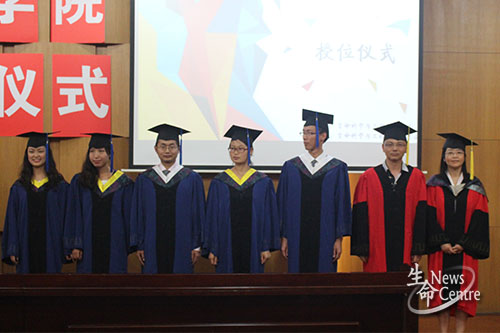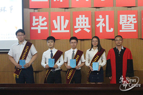 院长周先礼,党委副书记罗妍妍,院长助理李遂焰,生物工程系主任喻凯,化学化工系主任陆群,2011级班导师代表童妍,11级辅导员张敬文,12、14级辅导员魏源成老师出席本次典礼,与成人直播