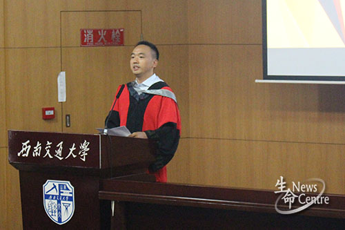 之后,本科毕业生代表夏林进行发言,她表达了毕业的复杂心情:激动、不舍、怀念,同时,亦表达了对学院老师们的感谢;硕士研究生代表李慧随即发言,同样对老师们的辛勤付出表示感激,此外,她回顾七年的交大生活,深情饱满的演说牵动着每一位毕业生的心;作为教师代表,李遂焰老师对毕业生们取得的优异成绩表示祝贺,并希望他们能够常回学校看看。