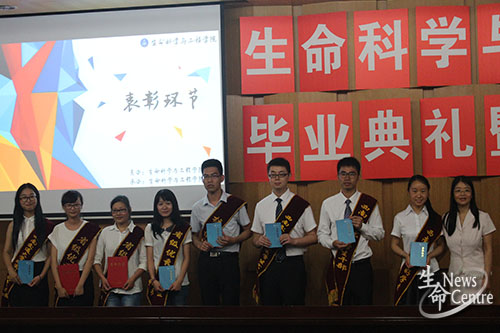 2015届毕业生表彰决定》,由喻凯、李遂焰、陆群三位老师为获得荣誉的优秀集体与个人代表进行表彰、颁奖;紧接着,周院长为毕业生赠送毕业纪念品,小小的纪念品蕴含的是老师们对于毕业生们的殷切希冀。