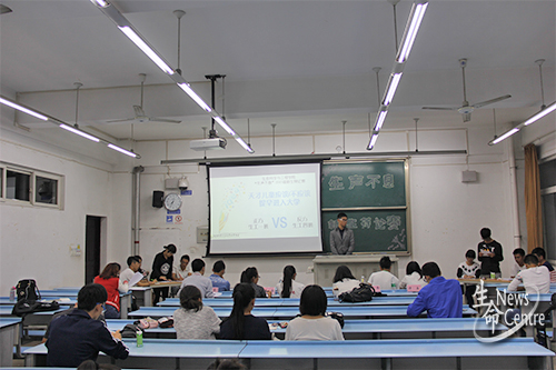 “生声不息”新生辩论赛初赛在X2531如期举行。参赛双方分别为正方的生工一班和反方的生工四班,双方围着“天才儿童应该/不应该提早进入大学”展开激烈辩论。与会评委有张祎斌,刘钰菁,靳学,高毓瞳和廖佳红。
