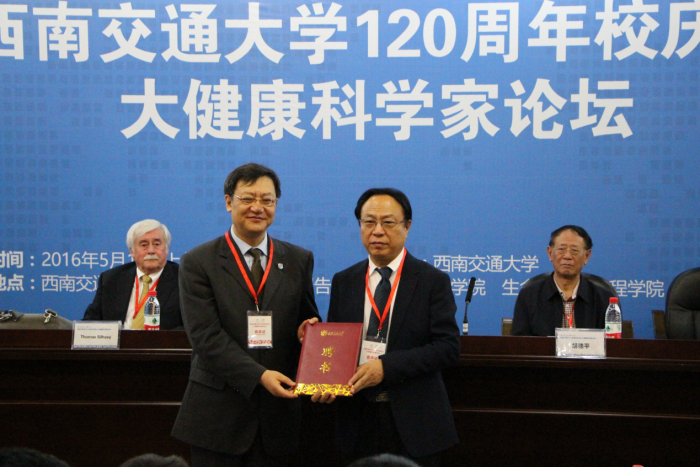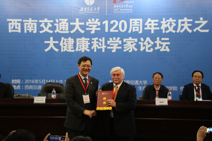 名誉教授聘书。随后,四位重要嘉宾Thomas Silhavy教授、吴以岭教授、黄璐琦教授、向宏理事长分别作了题为《Challenges to the miracle of antibiotics》、《络病研究与转化医学》、《道地药材的分子生药学研究》和《海峡两岸医疗大健康产业合作的超级项目模式》的主旨演讲,受到来自北京、广东、福建、河北、四川等省市专家以及部分返校校友、校内师生等400余人的热烈欢迎。