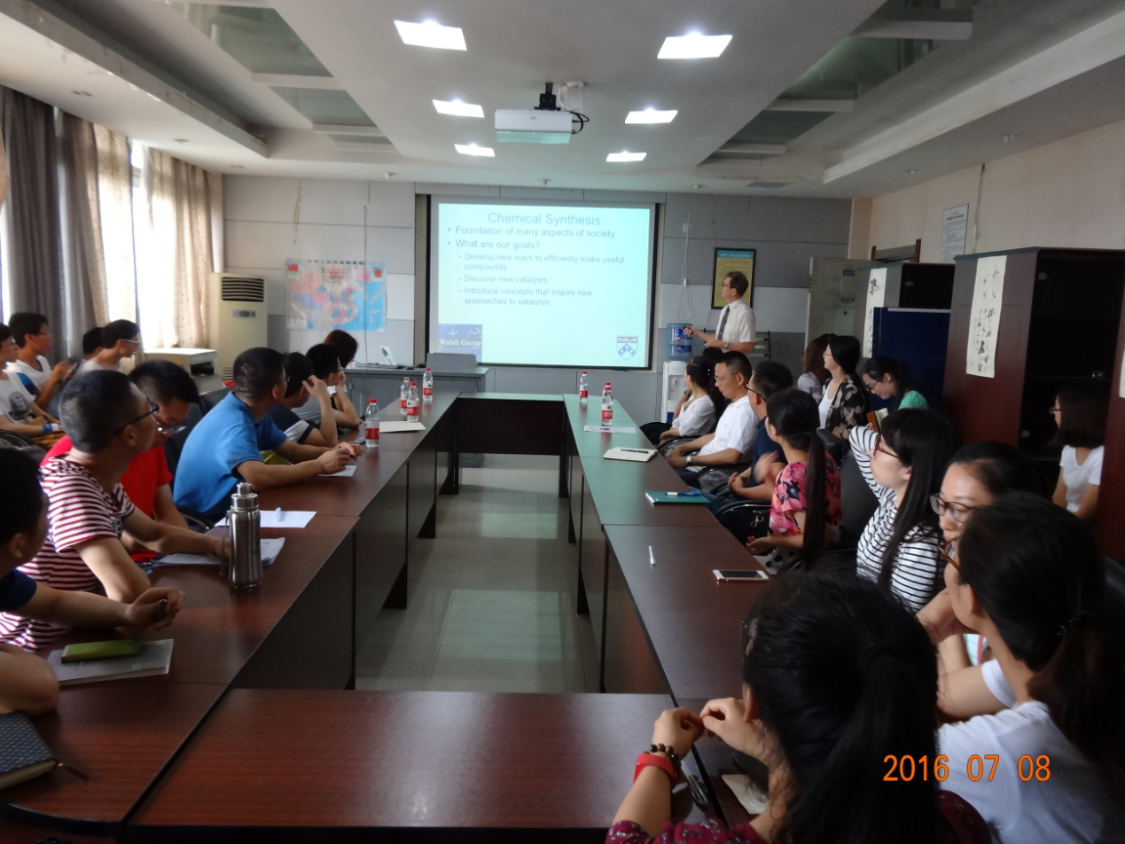 7月8日上午10:00我院邀请到美国宾夕法尼亚大学大学化学系终身教授Patrick J. Walsh教授在3609会议室作了题为:“Arylation of weakly acidic C-H’s”的学术讲座。成人直播