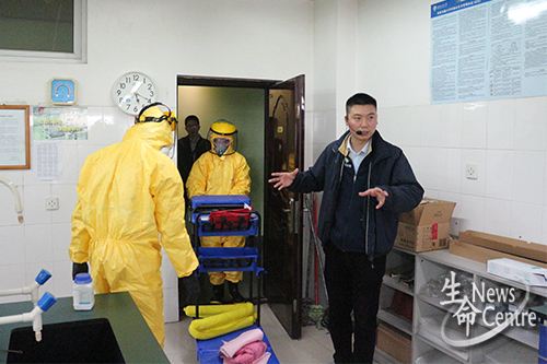 危险化学品安全管理知识讲解完毕后,在屈老师的指挥下,实验室有毒化学药品泄漏应急措施的模拟演练随之开始。一名同学因化学药品“泄漏”受伤,危害发生后,实验学生第一时间逃生并呼喊,专业人员随即赶到现场对“受伤”同学进行治疗并处理事故,实验室人员立即从最近的安全出口有序撤离现场,演练过程进行得有条不紊。