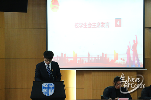 紧接着,校学生会主席赵天胤同学发言。他代表校学生会对成人直播