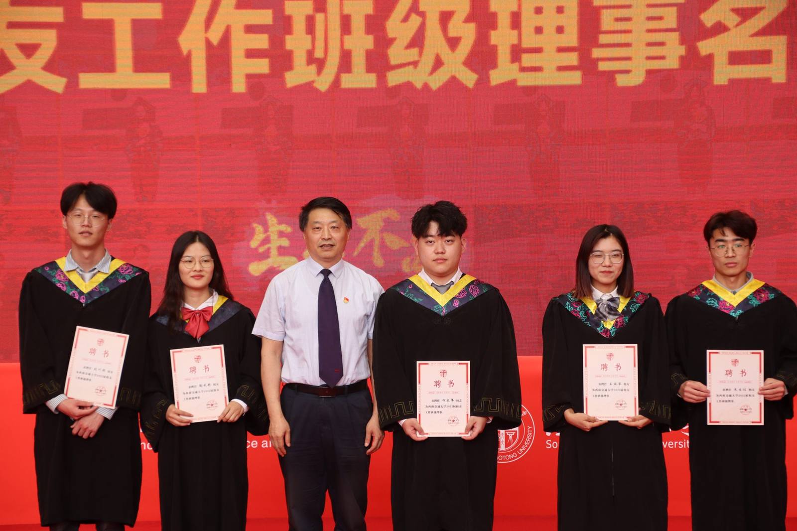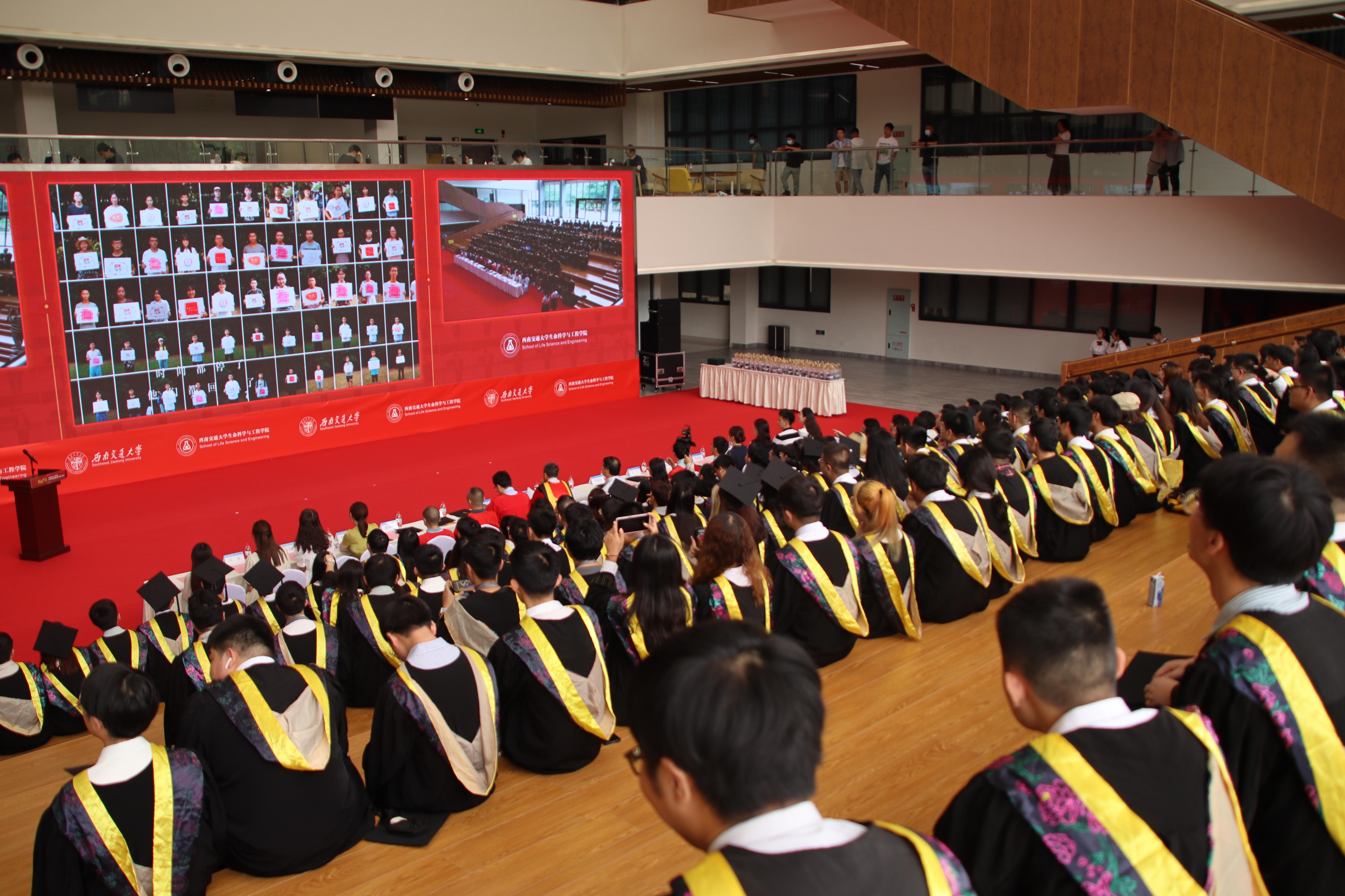 在犀浦校区三号教学楼一楼下沉广场举办2022届毕业典礼暨学位授予仪式。学院党委书记葛永明、院长周先礼等院领导与全体毕业生一起现场参加典礼。由于疫情未能返校的部分毕业生和亲友通过观看图文直播的方式线上参与典礼。典礼由吴亦鸣同学主持。