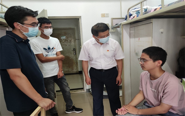 学院充分发挥“教师深入,党员冲锋”的双引领作用,关注“身”“心”健康两个层面,学院党委书记葛永明、院长周先礼带头走进学生寝室关心慰问,了解学生们的学习和生活情况,认真聆听同学们的心声,叮嘱同学们注意疫情防护,严格遵守学校各项防疫要求,同时要加强体育锻炼,希望同学们要保持良好的生活习惯,以乐观的态度和饱满的精神投入到学习中。学生工作组的辅导员老师们常态化深入学生,扎实做好疫情防控工作、暖心做好后勤服务,坚持把学生的生命安全和身心健康放在第一位。