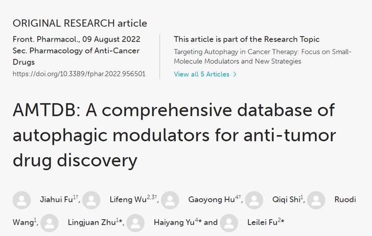 符雷蕾副教授成功构建一个细胞自噬相关抗肿瘤药物的 在线数据库:AMTDB
