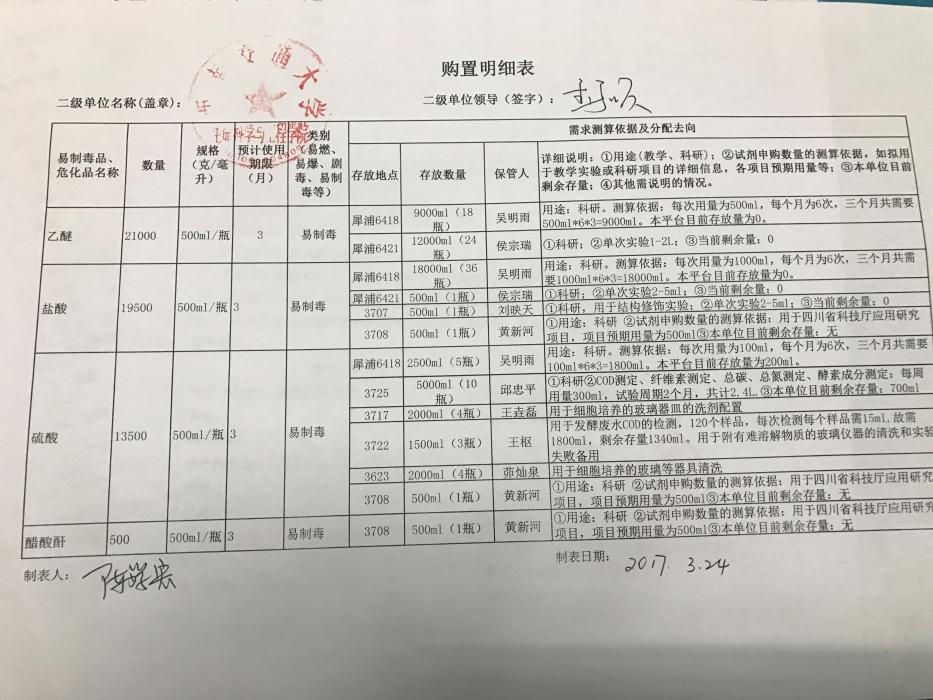 2017-04-06成人直播 第二季度易制毒试剂购买送货通知 根据各位老师上个月提交的购置申请,目前已经依次完成资实处审核、保卫处审核、学校备案...